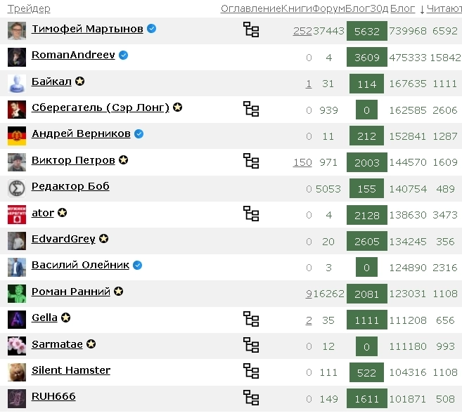Кстати, он не один такой тут. Есть еще Колесников. Байкал вон хоть в 10% своих постов и о торговле пишет. И я, например, только их у него и читал, а остальное пропускаю. Но он пишет в разы реже, чем мною указанные.