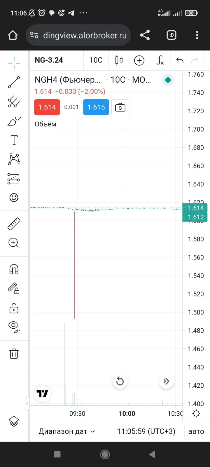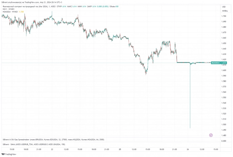 с вечера 25.04 базовый американский контракт NGK2024 двигается уже cам по себе, а наш болтается ± 0.1 цента к цене рассчитанного QG