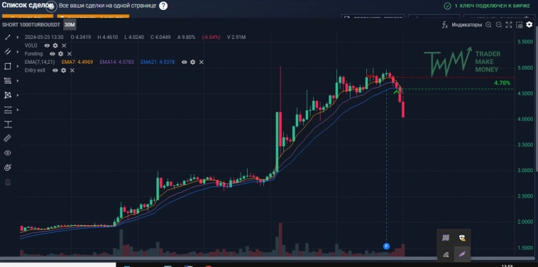 Очередной красивый шорт! Лидер роста крипта.Не думаю что это его хай.Но там так все красиво был.Грех просто не шортануть было.Все мои посты и сделки к этим постам в моем блоге.Хоть и не часто выкладываю.Я уже открытым текстом вам писать стал.Вы там быстрее научитесь.Там не надо заоблочных средст Икуда больше адреналина.Если там волна лидера роста то это настоящая волна.Не думаю что я умнее всех.Попробуйте.Напишите подскажу куда глядеть то! 1000TURBOUSDT