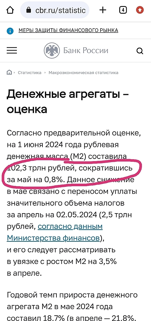 ЦБ сокращает денежную массу, рублей меньше — рубль дороже, фонда падает.