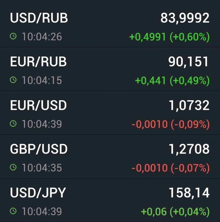 Доброе утро! Сосредоточимся на родном( для многих) рубле РФ. Вопреки ожиданиям многих в среду ещё прошло укрепление, начатое во вторник, да такое приличное, что успели доехать до 82,77 за один доллар. Картина и по доллару, и по евро была одинаковая, выглядело всё примерно так: