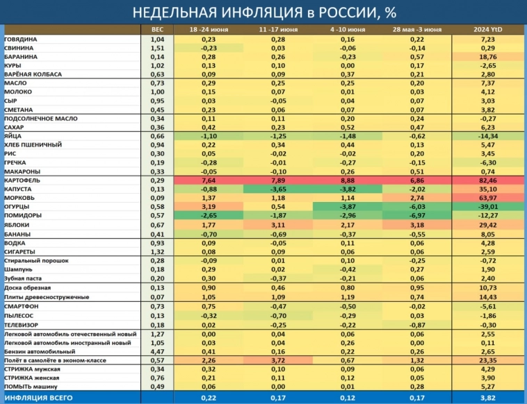 ИНФЛЯЦИЯ: САМЫЙ СИЛЬНЫЙ РОСТ ЦЕН ЗА НЕДЕЛЮ В 2024г