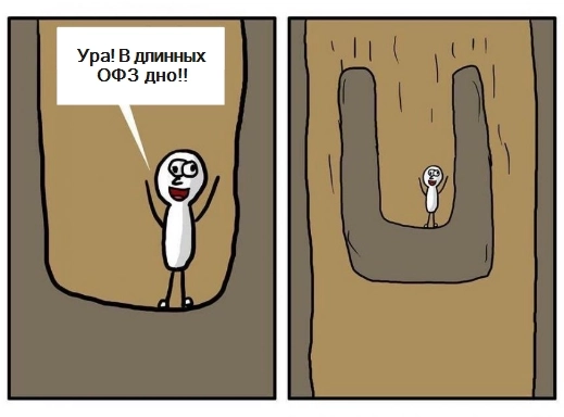 Мы считаем, что это именно второе, так как у УК скопилась ликвидность на фоне регулярных выплат купонов и отсутствия успешных аукционов ОФЗ (= нет оттока в новые выпуски). А поскольку уже заканчивается второй квартал, то, видимо, эту ликвидность решили инвестировать в фиксированный купон, который просел.