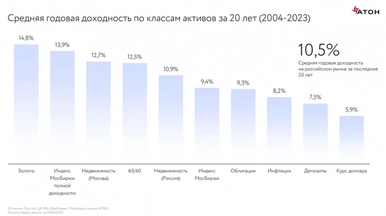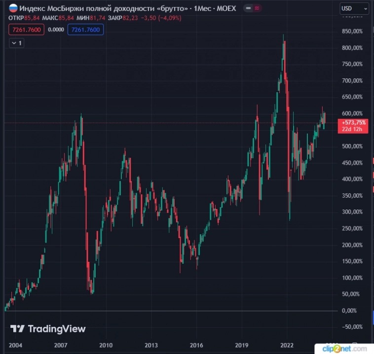Итого рост в 5 раз в баксах за 21 год.