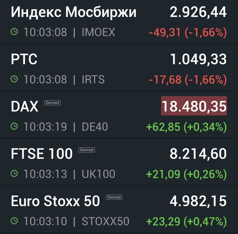 Доброе утро! Индексы России и Америки двинулись в прямо противоположном направлении: РТС(