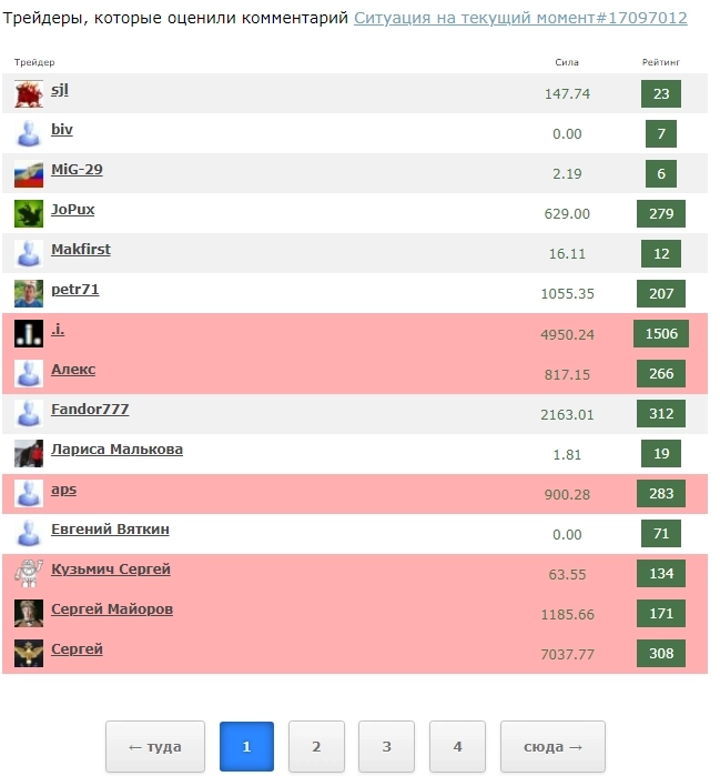 Нажал кнопочку, там 5 страниц. Очень легко подсчитать минуса и плюса. Вы на 5 странице. Общее количество простым умножением 15*4+8=68 голосов. Считаем минуса (их меньше) и вычитаем из 68, получаем плюса.