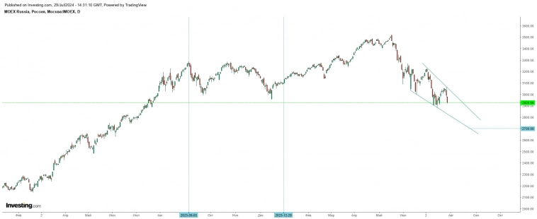 29.07.2024. В пятницу индекс ММВБ закрыл день красной свечкой, слив за один день труды целой недели быков и вернув нас к своим основным поддержкам (на утро — кластерная зона 2970-2959), откуда мы поначалу отбились, но на вечёрке снова близко к ней подошли и вполне возможно сегодня будет повторный этой зоны тест. Будем ждать отработки: отбой даст быкам шансы на возобновление роста с ближайшими целями 3013 и 3033, а в случае их пробоя с ретестом — до более сильных сопротивлений в зоне 3095-3106.