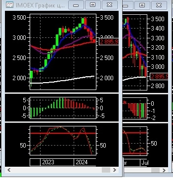 1. Вчера индекс МБ попытался преодолеть 2960. Не смог. В приоритете финальный откат в область 2850-2800