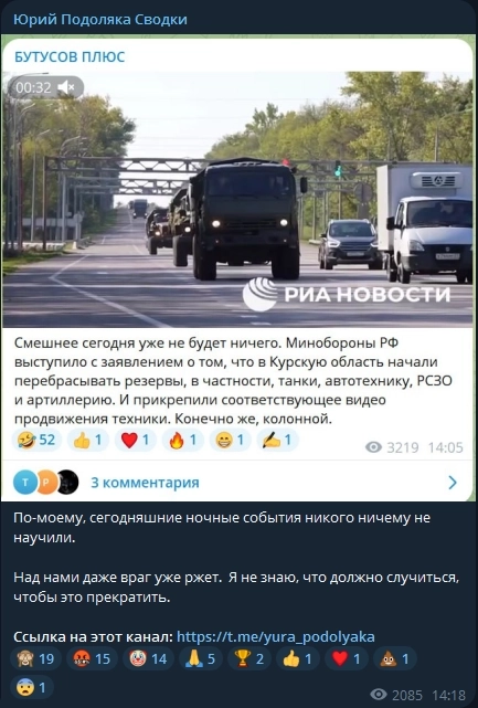 А это ваш Подляка объясняет что мы тупые — колонны техники гоняем