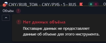 Вопрос был удален из ветки, по необъяснимой причине. Вопрос остается в TradingView по CNURUB_TOM перестали отображаться объемы по всем фреймам. В ТВ пишется что поставщик услуг не предоставляет данные, но в квике объемы показываются. Вопрос будет ли это исправлено, или это данность с которой все теперь будут жить?