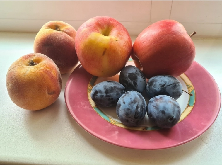 Кстати яблоки и сливы привезли из Сербии, в подарок так сказать. Персики покупные правда.