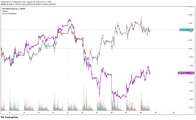 По мере снижения навеса продаж юаней ситуация немного успокаивается, но расхождение курсов остается высоким.