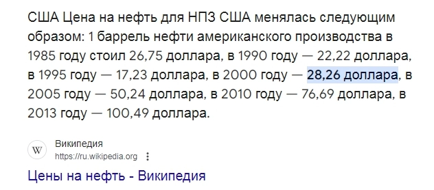 Сейчас бочка нефти стоит 71 доллар, это 28 долларов в ценах 1990 года.