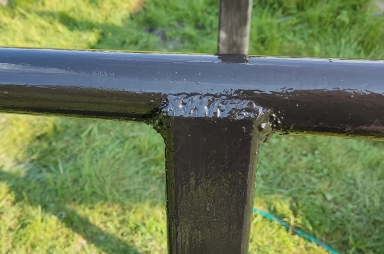Круглые трубы приварил к столбам, отбил шлак и закрасил. Всё.