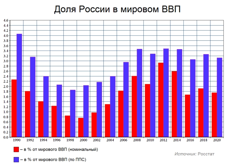 За 2023 год доля ВВП России в мировом ВВП ушла на уровень 2000 года. Кстати это год прихода Путина на место президента.