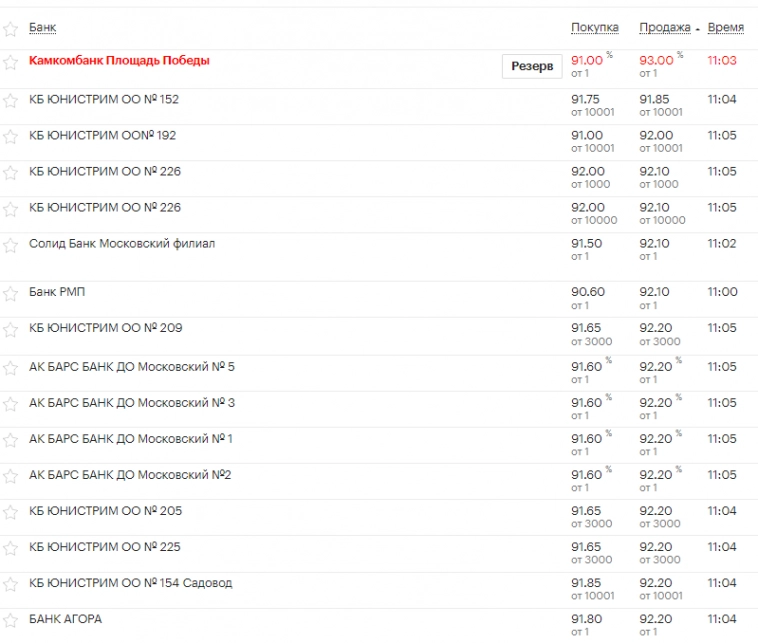 В банках пока покупка 91.80 / продажа 92.50 (ждем открытия рынка)