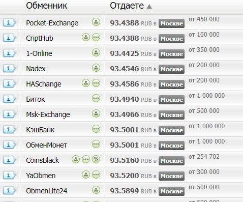 93.10 вам дадут за USDT ТОП-10 обменок (сити-экченж- наших партнеров кстати)