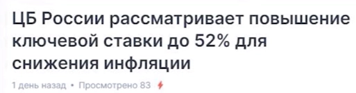 - ⚡Жесткость ради жесткости. ЦБ утверждает, что для достижения целевых показателей инфляции к 2025 году необходимы более суровые меры. Если обычным языком: нам предлагают затянуть пояса ещё туже, в надежде, что это когда-то приведёт к стабильности.