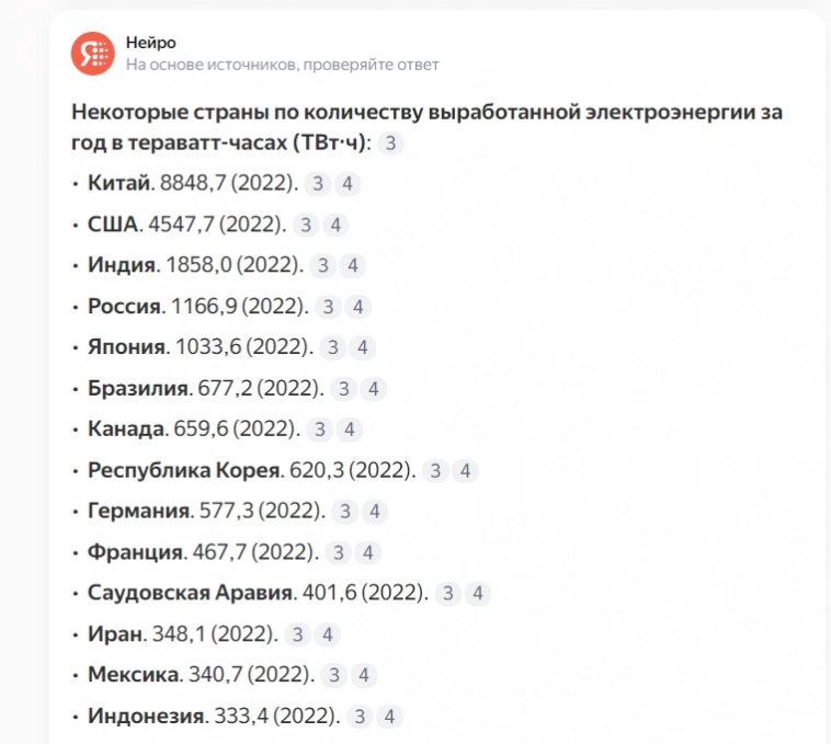 Россия стоит на 4 месте в мире по генерации электроэнергии!!!