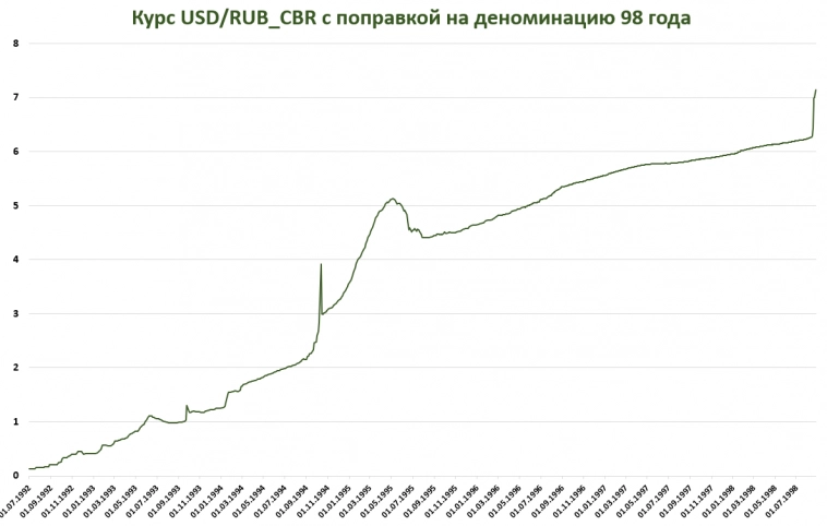 Сейчас такая же история, шип на 154 и все будет стремится к тому что бы и дальше обесценивать рубль. Сейчас все для этого, ОФЗ провальные размещения, одно за другим. Длительное удержание высокой ставки, никогда депозиты не обгонят девальвацию. Загон населения в депозиты для того, что бы их просто там обесценить при помощи девальвации.