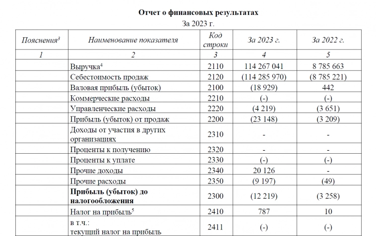в РСБУ отразили только финрез — +2,7 млн руб