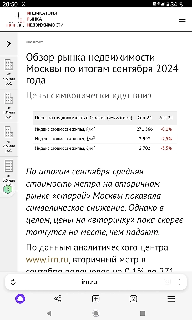 При этом в Москве за сентябрь месяц недвижка подешевела на 3,5%.