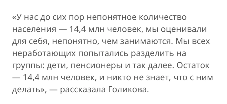 Вот вам и ответ почему безработицы в стране нет. А уже отсюда они продолжают логическую цепочку и заявляют, что раз нет безработицы, значит есть дефицит рабочих рук (что только звучит логично, если не углубляться в детали происходящих процессов).