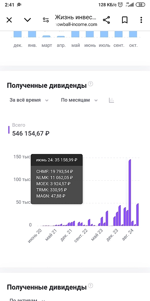 К тому же, у меня есть и позитивный фактор-это моя пассивная доходность, которая постоянно растёт. С последней покупкой она снова обновила рекорд и средняя, ежемесячная выплата с портфеля превысила 37000р.