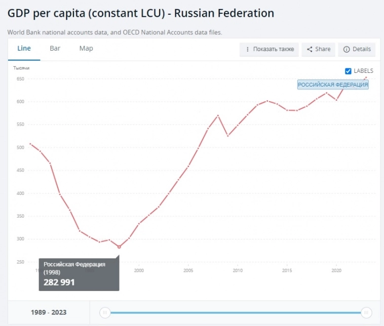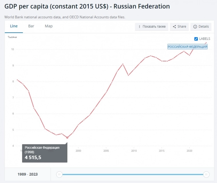 Когда вы непредвзято посмотрите на данные, вы поймёте, что моё изначальное сообщение было верное. Но если вы хотите оставаться с иллюзиями того, что сейчас хуже, чем в 1998 году, кроме наличия техники, то это ваше решение.