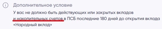 EGIK79, ПСБ в тарифах от 19.12 изменил условия предоставления вклада «Народный Плюс». (https://www.psbank.ru/Personal/Saving/narodnyy-vklad?tab=narodnyy_vklad_plyus) Теперь не получится открыть вклад после перевода самому себе 18к по СБП, нужны именно перечисления от организации (зарплата).