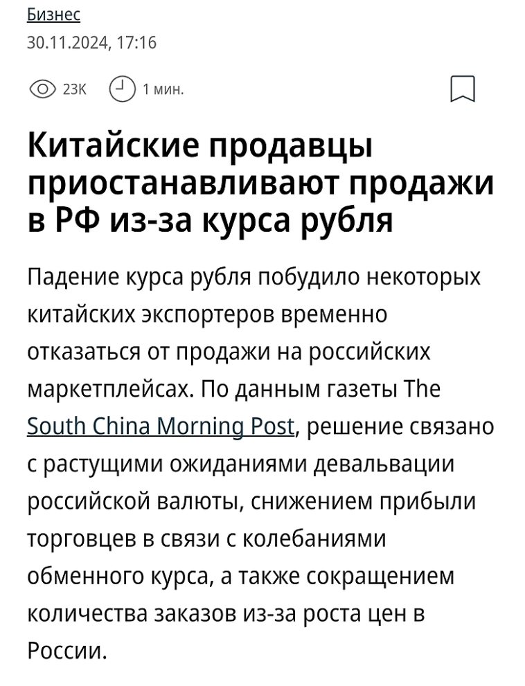Более того — высокая ставка убила экономику, производство не растет (а падает), инвестиции нулевые - в итоге имеем рост денежной массы и падение предложения что и вызывает ту самую инфляцию (прибавим себя и рост налогов и регулируемых тарифов!) против которой безумный ЦБ борется повышением этой самой ставки ;))