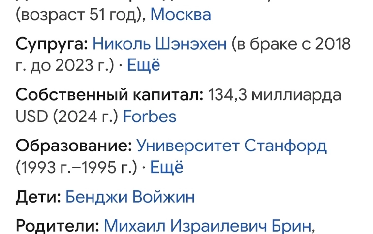 это ты больной, если не знаешь, что в СССР жили евреи. Брин родился в СССР, в Москве, в семье советских математиков, которые с детства привили Сергею интерес к математике, что и обеспечило его успешную учёбу в США. Ладно, Брин уехал ребёнком. Теперь ответь: отец Брина стал почетным профессором Мэрилендского университета, мать работала в НАСА. Если советские инженеры были такие негодные, то как они туда попали? Не думал об этом? Дурачок.