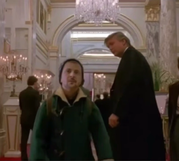 Старший сын Дональда Трампа с юмором отреагировал на сравнение фотографии встречи его отца с Зеленским с известной сценой из фильма «Один дома 2», где Трамп появляется в кадре с Кевином Маккаллистером в отеле.