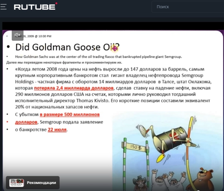 в 2008 году Голдман прогнозировал нефть по 200… при этом сам управлял котировками на рынке опционов на нефть...