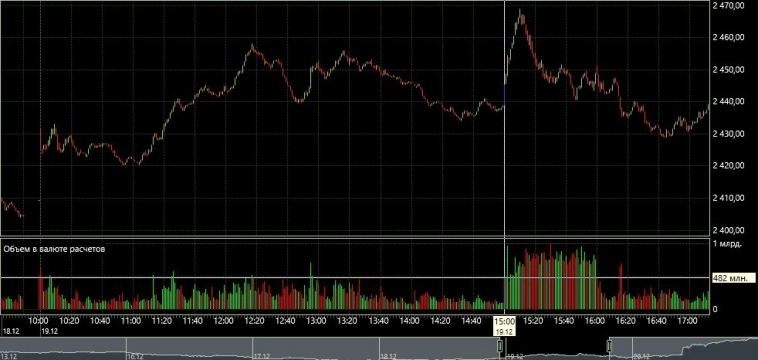 За 5 минут только на индексе ~19,9 млрд рублей. А предыдущие относительно большие объемы — за день до этого в районе 800 млн и как по часам ровно с 15:00 до 16:00