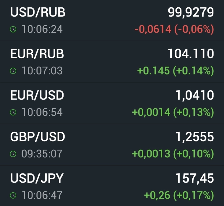 Во вторник результаты индексов: РТС(+1,30%); ММВБ(-0,43%); S&P(+1,10%). Изменений на товарном рынке можно сказать не было, объёмы торгов упали и вот такой результат. Рубль ещё несколько укрепился и в ходе сессии показал результат(₽99,49), но закрытие ровно (100 рублей).