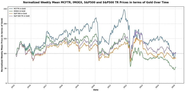 3. Манипулирую: самая первая запись о доходности РФ акций с учетом дивидендов — февраль 2003-го. Если брать эту точку, как отправную, то с тех пор MCFTR принес 1900%. А золото 2600%.