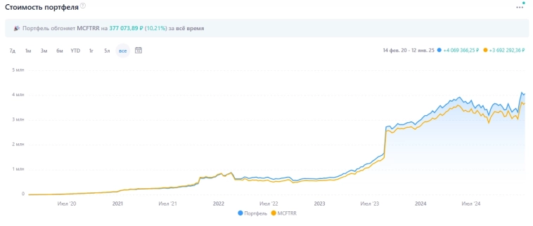 Моя цель-это в течении десятка лет создать капитал за счёт относительно небольших, но постоянных ежемесячных покупок акций, который будет генерировать пассивный доход в виде дивидендов.