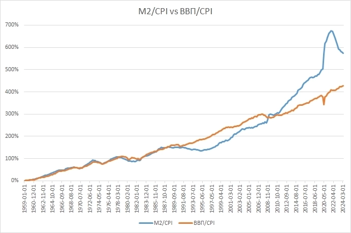 А в штатах нет роста ВВП в долларах/М2 с 1959-го года