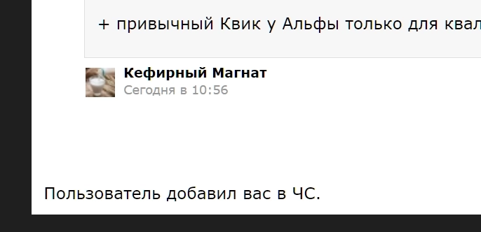Я имел ввиду другую ситуацию. Когда Чел занес вас в ЧС и пишет коммент под вашим постом. Тогда ответить ему нельзя, но можно просто коммент закинуть под свой пост и если там немного комментов, то он прочтет