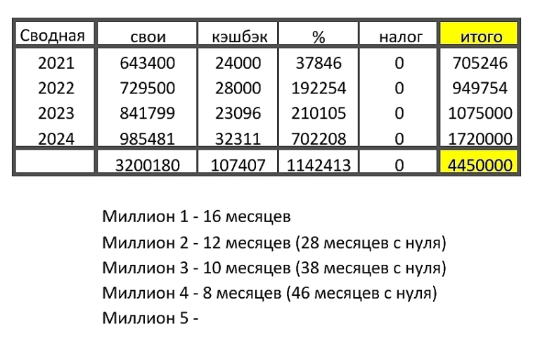 4-й миллион — через 8 мес (46 месяцев с нуля)