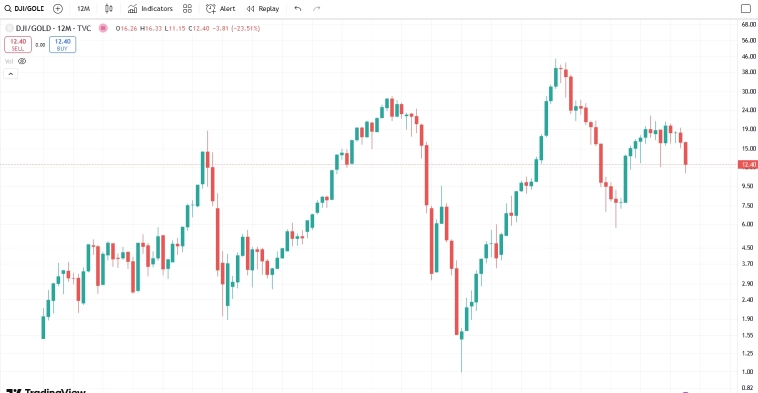 Вот график с 1896г DJI/GOLD и еще дивиденды не забывай, так что золото не очень против фр США