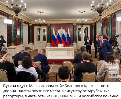 ⚡️Ожидается, что Путин ответит на ряд вопросов, касающихся возможных вариантов перемирия, ситуации в Украине и требований, выдвинутых «коалицией желающих» — журналисты Кремлевского пула