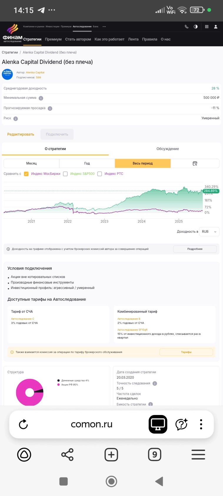 3. Бенчмарк для сравнения у них IMOEX, а не полной доходности, как будто у нас тут рынок США. При этом дивы которые были получены по стратегии они учитывают в своей доходности.