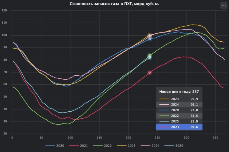 При этом в предыдущие годы в ПХГ закачивался российский газ с точки зрения его происхождения. Но в этом году из-за полной остановки поставок из России через Украину весь объём теперь импортируется с западных и южных входов в газотранспортную систему (ГТС) страны. Такая схема импорта и более высокая цена на спотовые поставки газа в 2025 году увеличивают нагрузку на бюджет Украины, полагают в «Сиала».