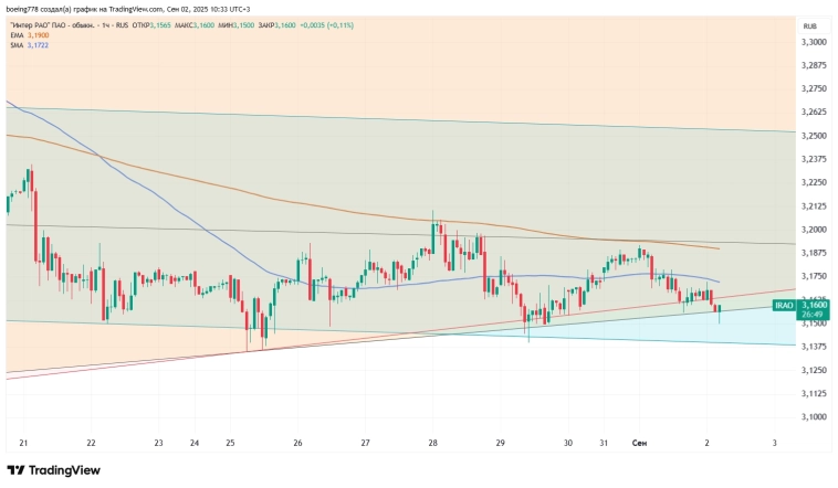 02.09.2025. Вчера индекс ММВБ закрыл день красной свечкой, слив весь рост конца прошлой недели и снова приехав ко своей поддержке (на сегодня — зона 2882-2879, верхний уровень зоны 2889 пилится, так что исключаем его из рассмотрения), откуда под конец дня отбился и слегка подрос.