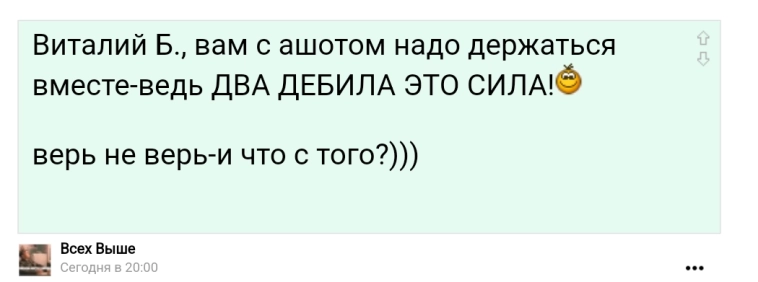 Это написал персонаж который мало того что комментирует с разных аккаунтов свои посты, но и отвечает сам себе, то есть общается сам с собой. С ним уже никто общаться не хочет. Осталось пару человек.