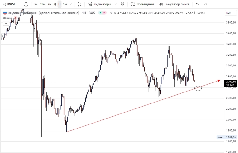 1. Вчера индекс МБ потестил указанную зону 2760-80 в отскоке.