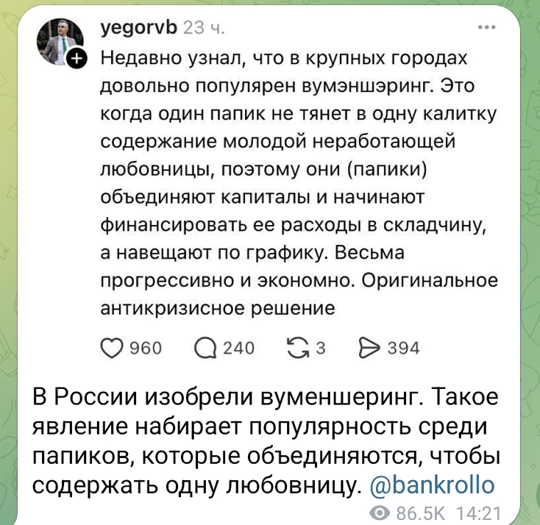 6. У кого нет жены модели, можно попробовать ее найти за 10% от тех сумм, которые они просят на содержание.