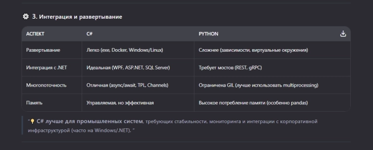 Решил этот вопрос задать ИИ. Беседа была достаточно продолжительной, касалась нескольких аспектов сравнения, по большинству из которых Python в заметном отрыве от С#.